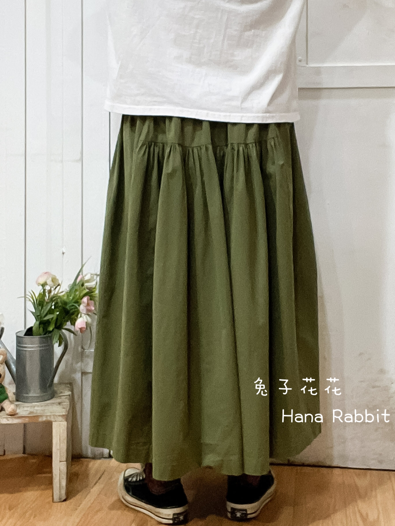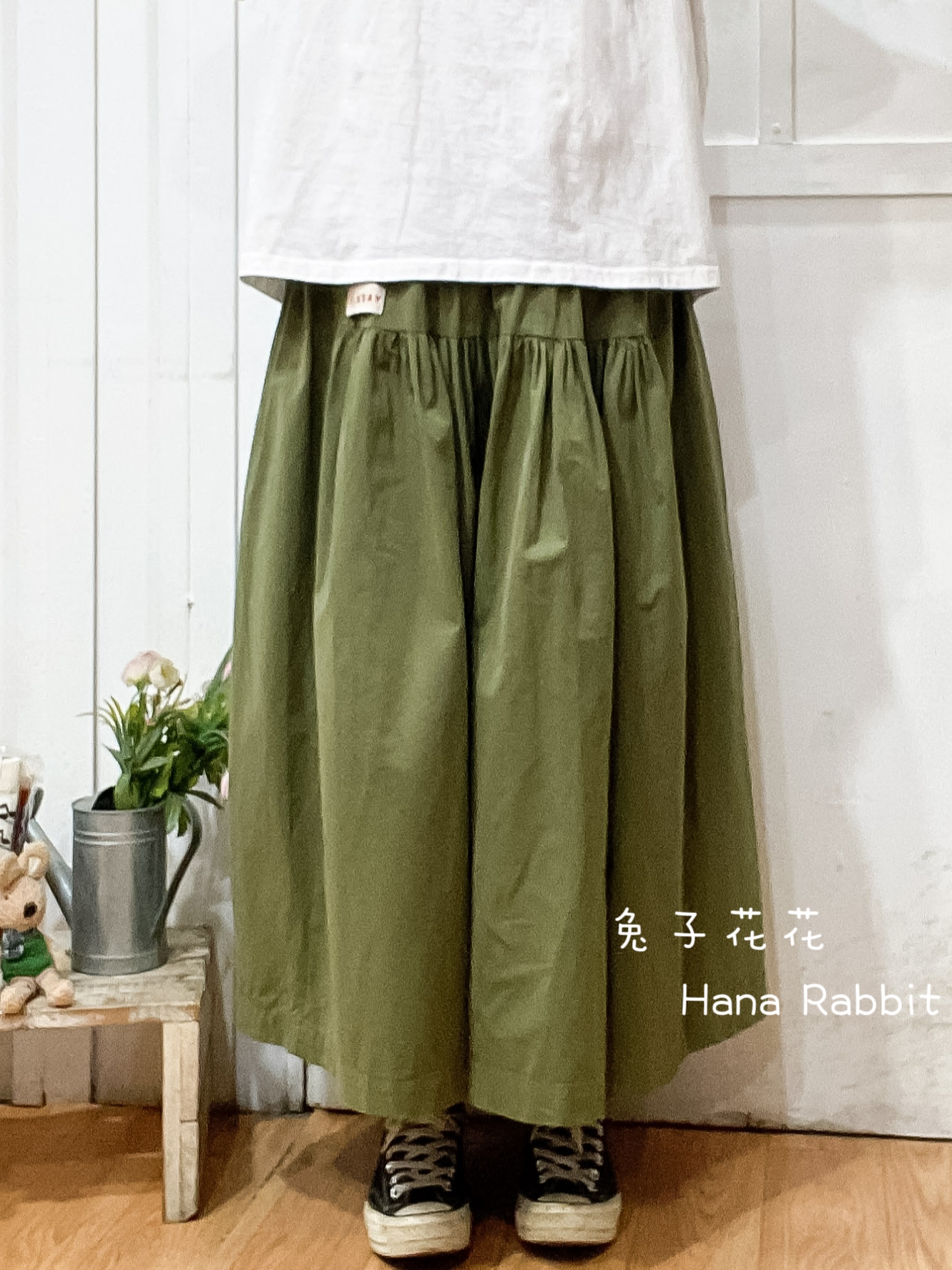 WE家小布標休閒大擺造型裙(綠) 17580