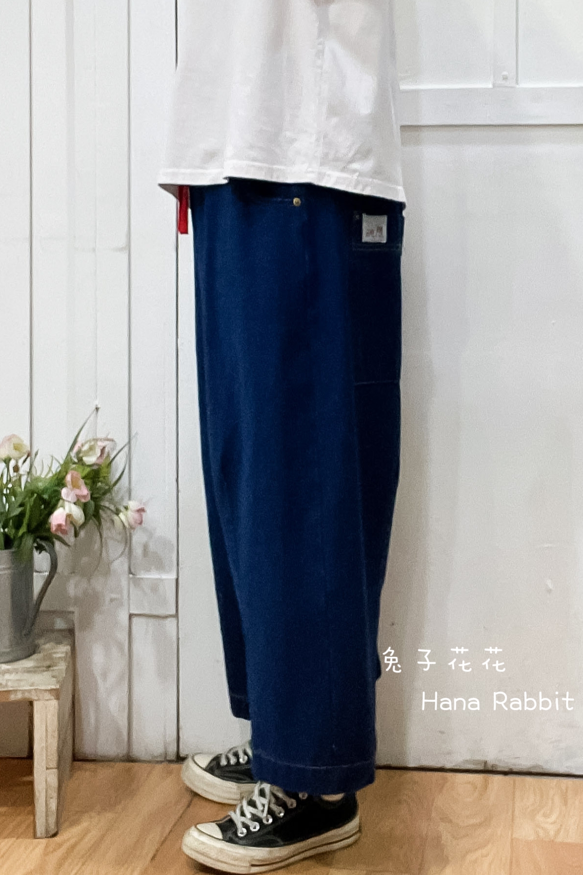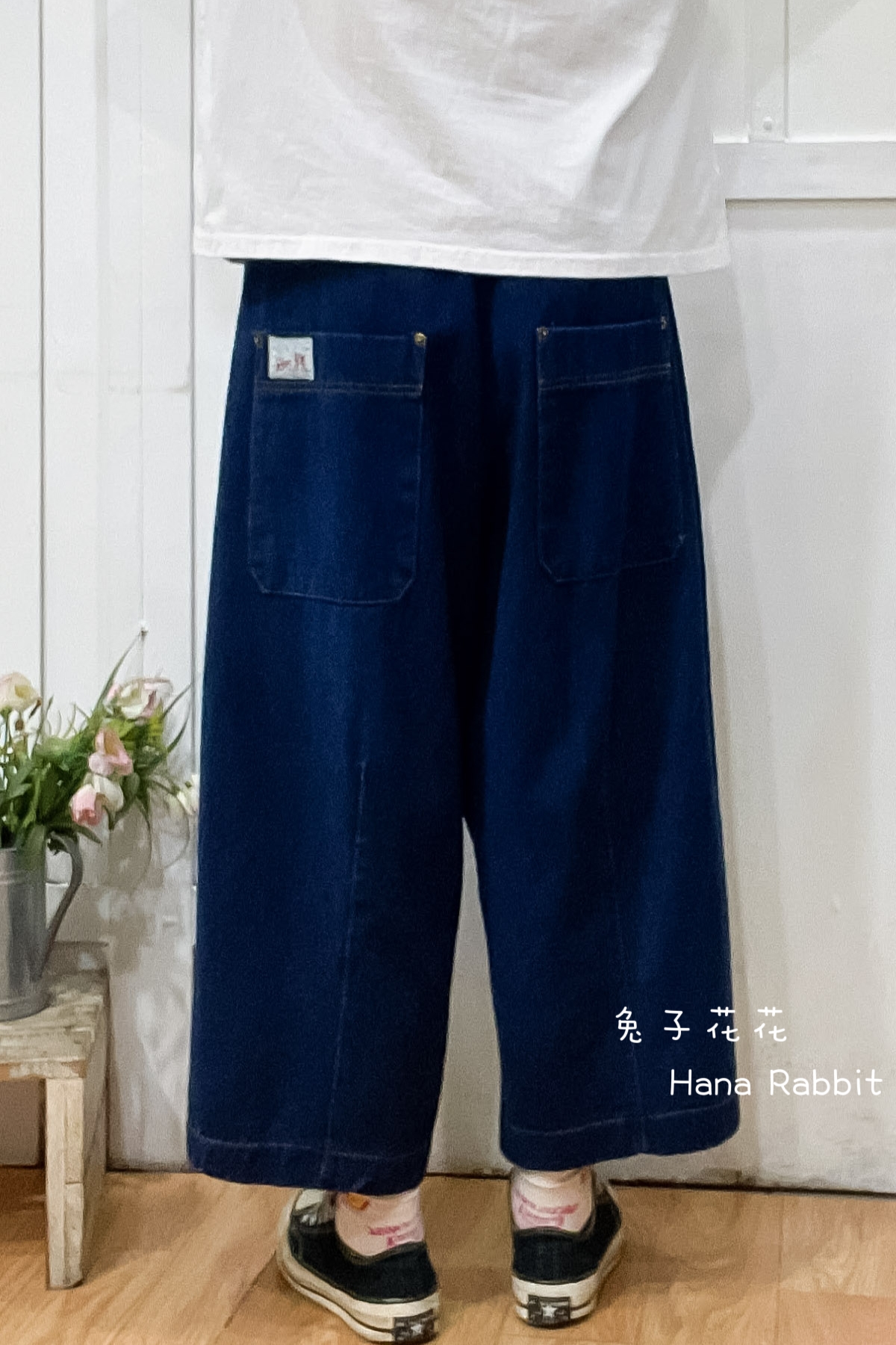 日系刺繡花闊腿丹寧造型褲 13837
