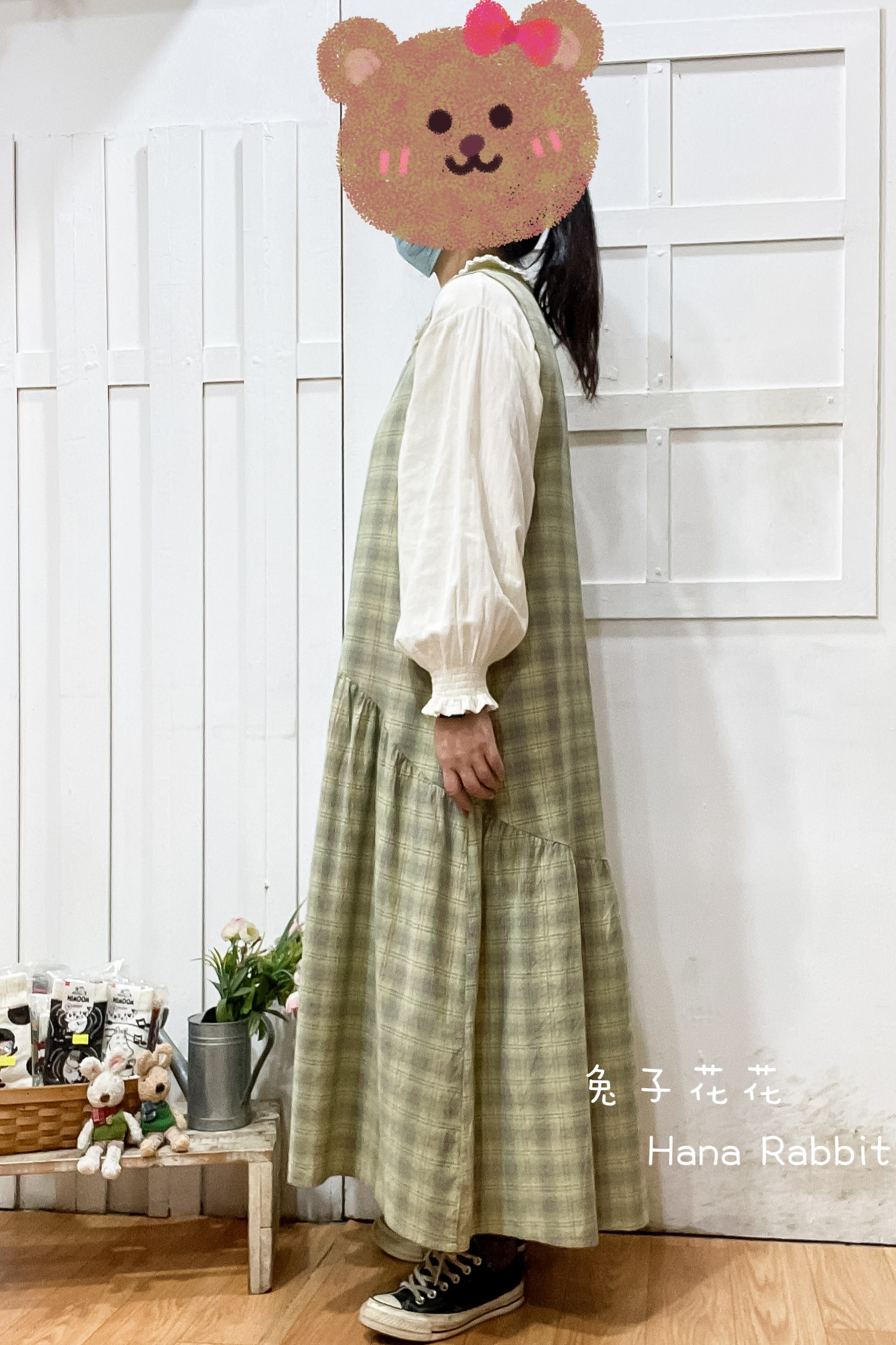 森系條紋可縮腰棉紗開襟洋裝 15504