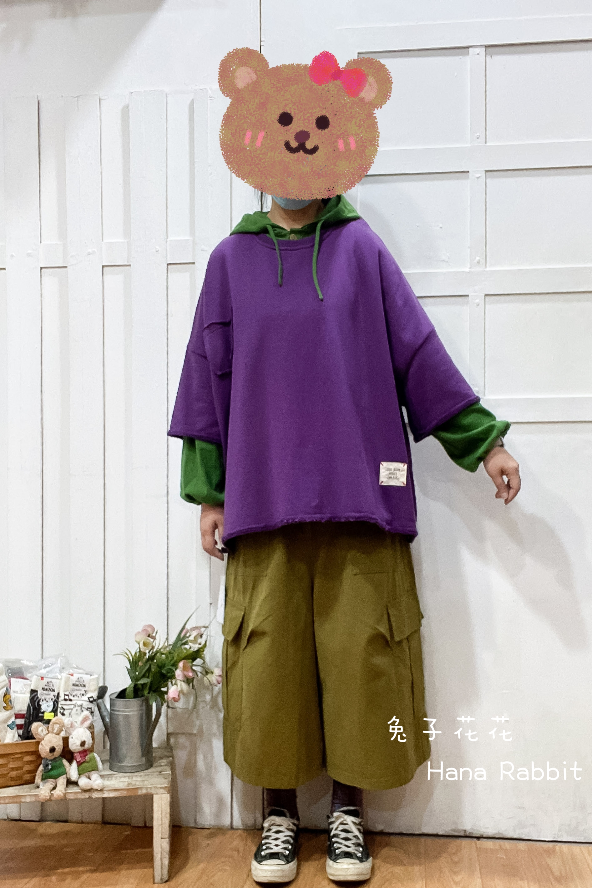 WE家簡約小布標毛圈棉上衣(紫) 14360
