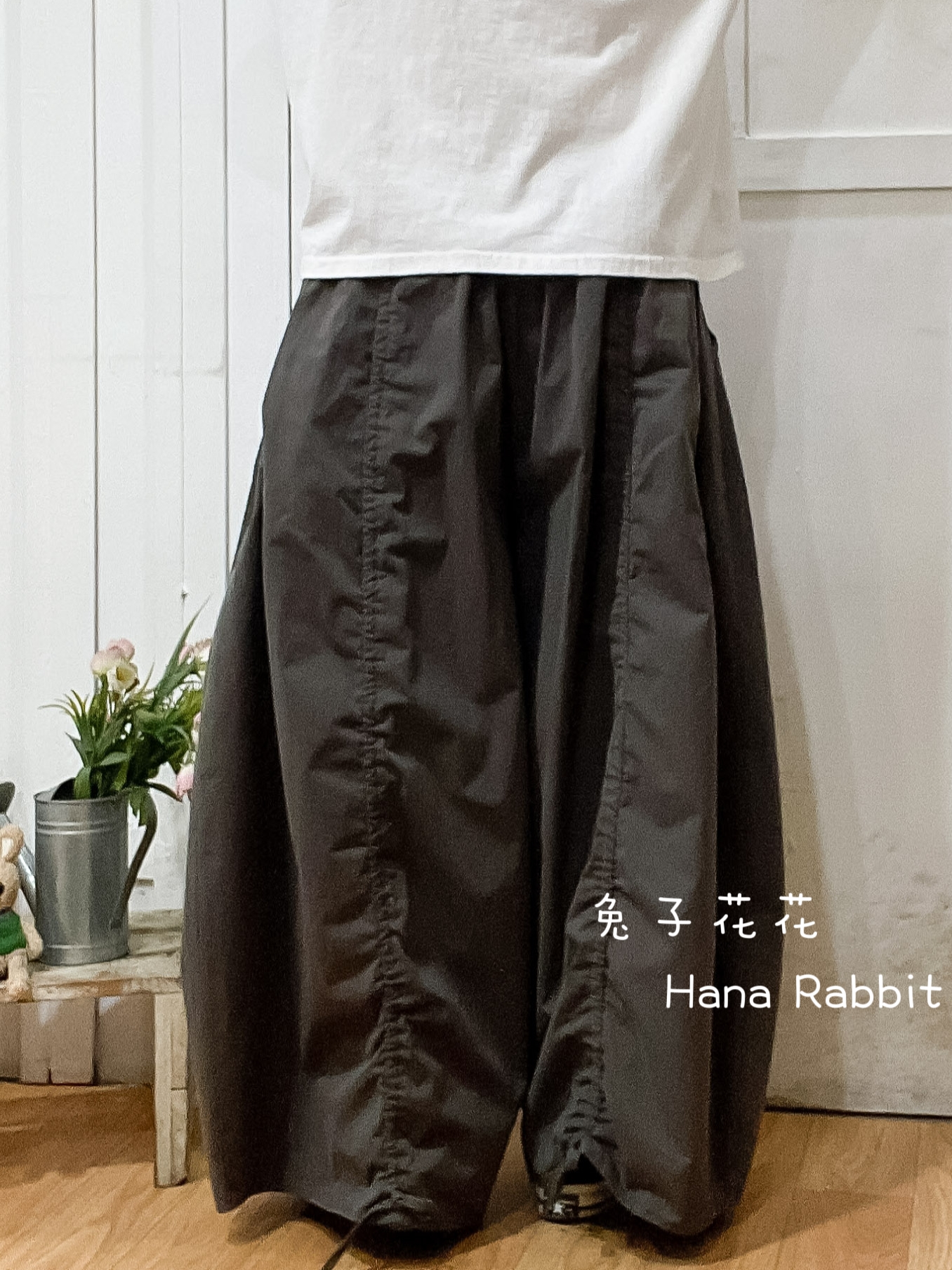 WE家純色抽繩南瓜造型褲(灰) 19452
