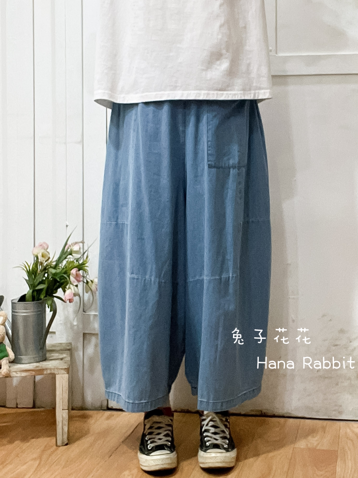 貓和魚簡約棉麻造型褲 16413
